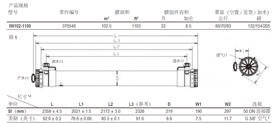 陶氏IW102-1100超濾膜組件是超濾膜中產(chǎn)水量最大的一款型號,采用高強度的PVDF材質(zhì)制成,采用外壓式過濾,進水質(zhì)量較低也不影響正常使用,適用于大規(guī)模的系統(tǒng)中,包括地表水、海水預處理、工業(yè)廢水以及二級處理廢水等。