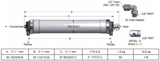 | 典型過濾水通量范圍: | 20-65gfd(34-110L/m2/h) |